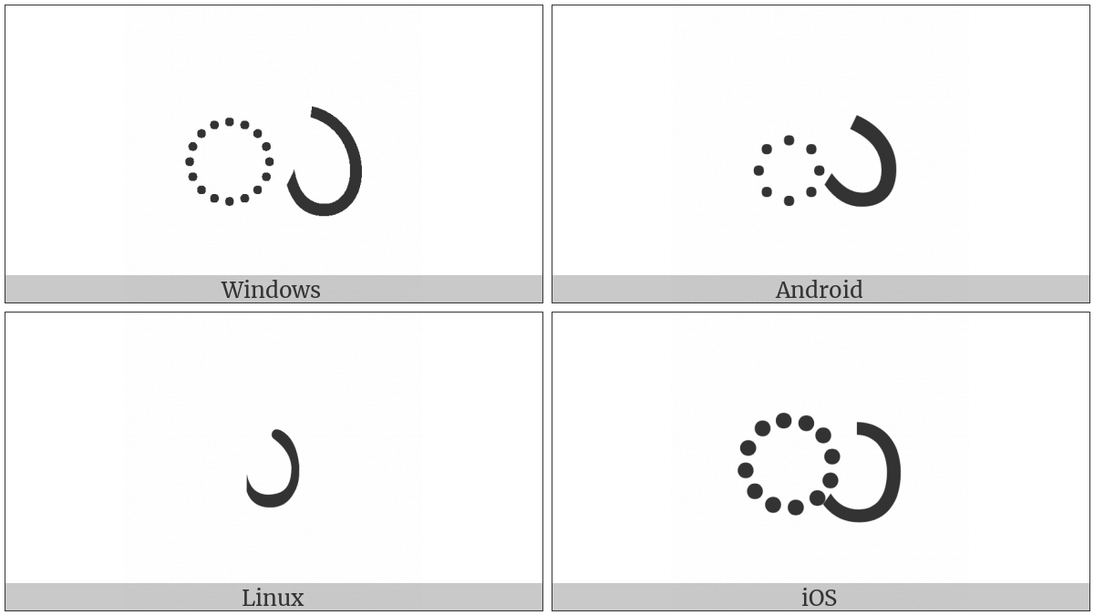 The image below shows how the “Telugu Vowel Sign U” symbol might look like on different operating systems. If the font in which this web site is displayed does not contain the symbol and there is no fallback font able to render it, you can use the image below to get an idea of what it should look like.
