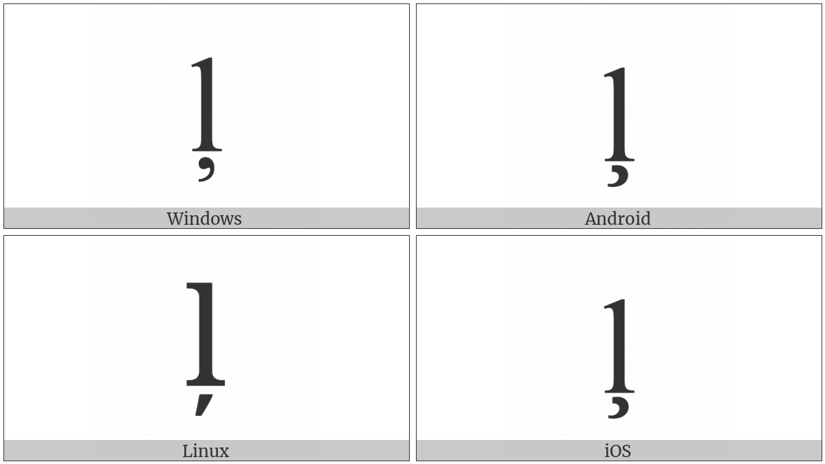 The image below shows how the “Latin Small Letter L With Cedilla” symbol might look like on different operating systems. If the font in which this web site is displayed does not contain the symbol and there is no fallback font able to render it, you can use the image below to get an idea of what it should look like.