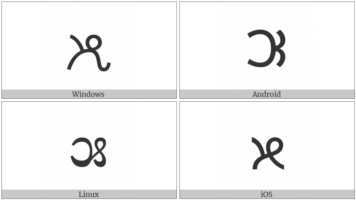 The image below shows how the “Telugu Digit Five” symbol might look like on different operating systems. If the font in which this web site is displayed does not contain the symbol and there is no fallback font able to render it, you can use the image below to get an idea of what it should look like.