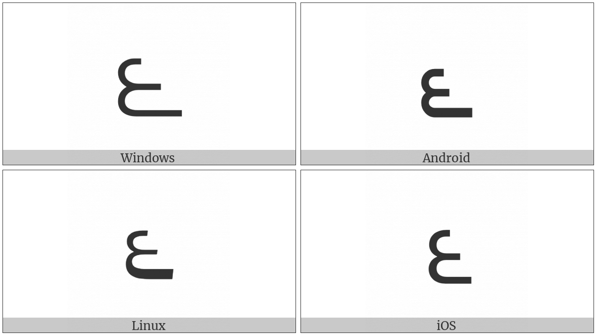 The image below shows how the “Telugu Digit Six” symbol might look like on different operating systems. If the font in which this web site is displayed does not contain the symbol and there is no fallback font able to render it, you can use the image below to get an idea of what it should look like.