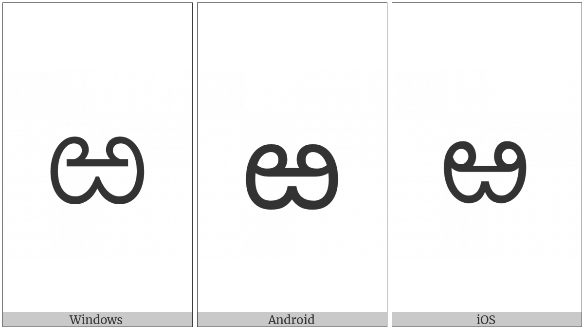 The image below shows how the “Kannada Letter Rra” symbol might look like on different operating systems. If the font in which this web site is displayed does not contain the symbol and there is no fallback font able to render it, you can use the image below to get an idea of what it should look like.