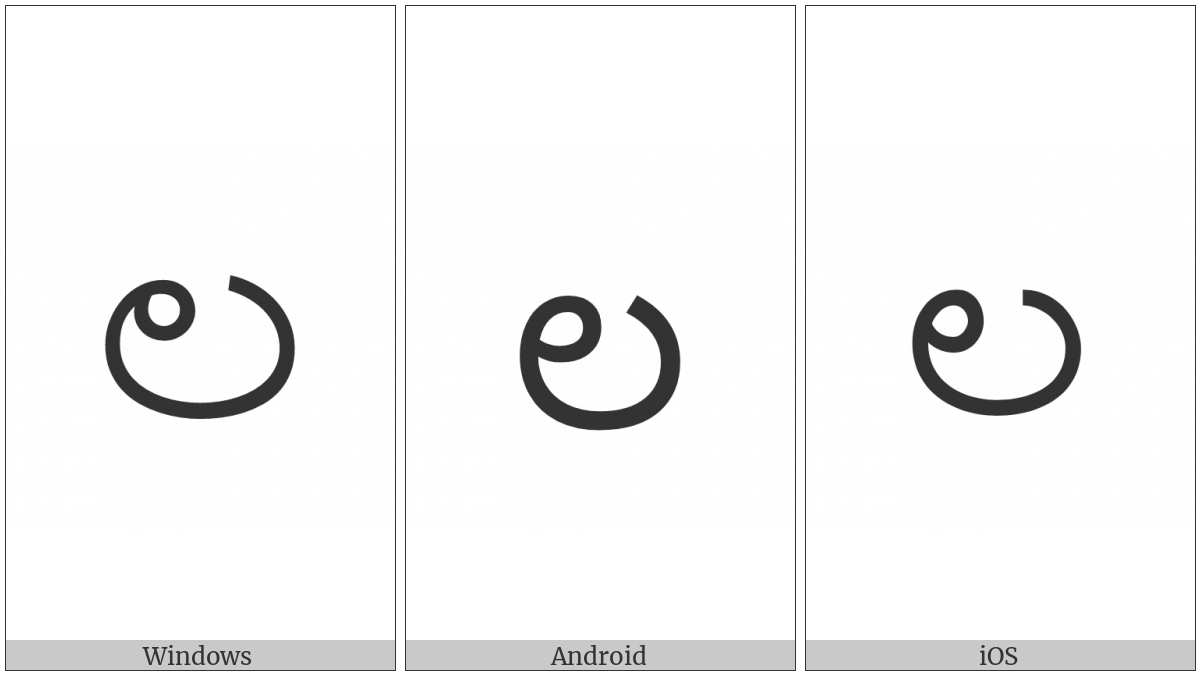 The image below shows how the “Kannada Letter La” symbol might look like on different operating systems. If the font in which this web site is displayed does not contain the symbol and there is no fallback font able to render it, you can use the image below to get an idea of what it should look like.