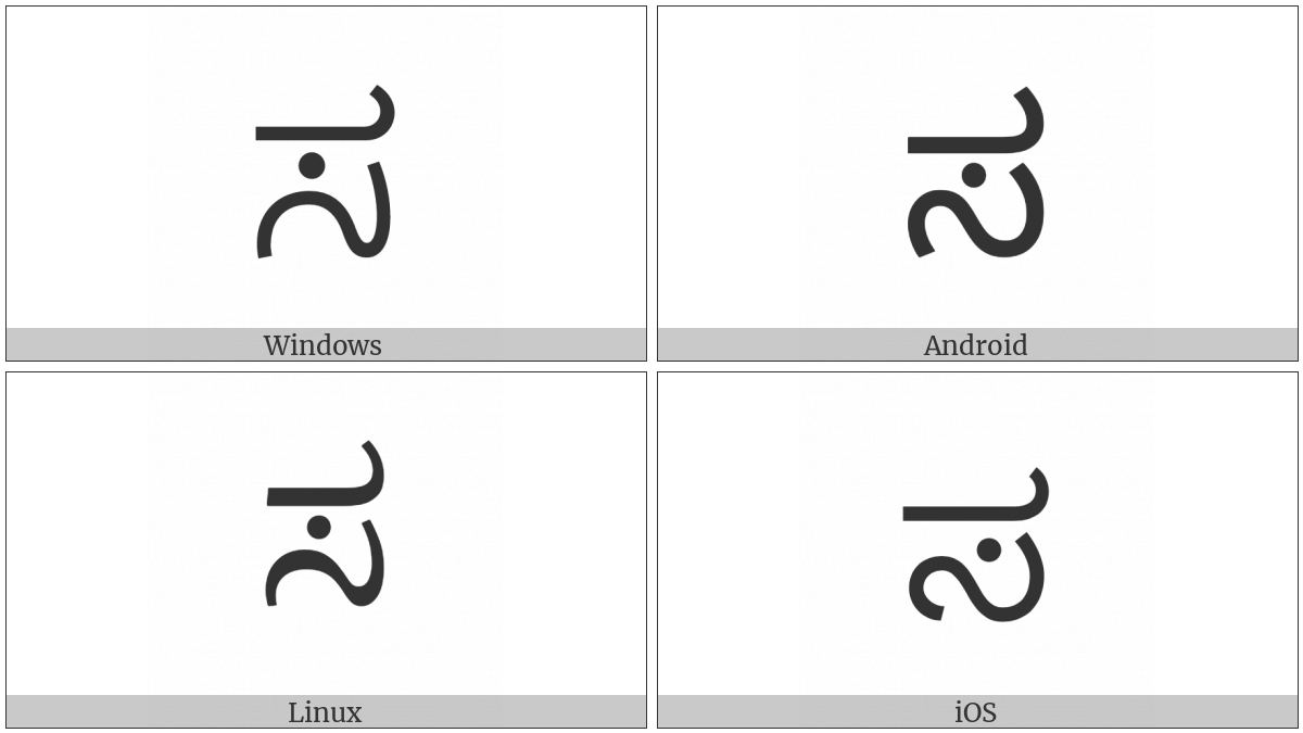 The image below shows how the “Kannada Letter Sa” symbol might look like on different operating systems. If the font in which this web site is displayed does not contain the symbol and there is no fallback font able to render it, you can use the image below to get an idea of what it should look like.