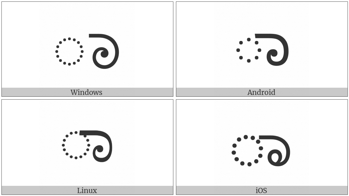 The image below shows how the “Kannada Vowel Sign Aa” symbol might look like on different operating systems. If the font in which this web site is displayed does not contain the symbol and there is no fallback font able to render it, you can use the image below to get an idea of what it should look like.