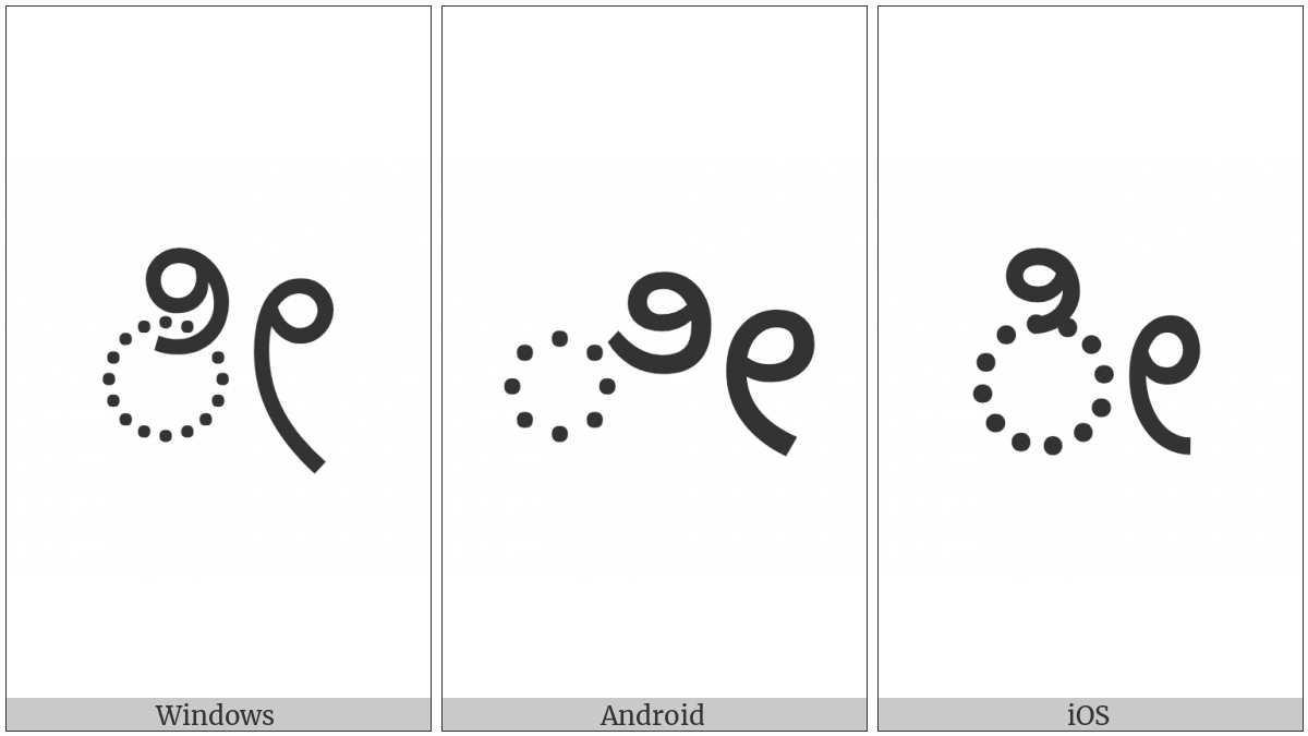 The image below shows how the “Kannada Vowel Sign Ii” symbol might look like on different operating systems. If the font in which this web site is displayed does not contain the symbol and there is no fallback font able to render it, you can use the image below to get an idea of what it should look like.