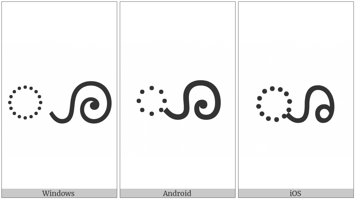 The image below shows how the “Kannada Vowel Sign Uu” symbol might look like on different operating systems. If the font in which this web site is displayed does not contain the symbol and there is no fallback font able to render it, you can use the image below to get an idea of what it should look like.