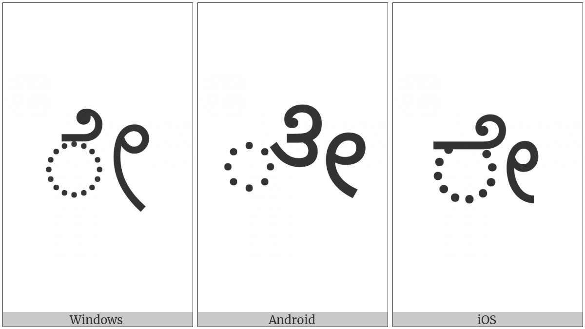 The image below shows how the “Kannada Vowel Sign Ee” symbol might look like on different operating systems. If the font in which this web site is displayed does not contain the symbol and there is no fallback font able to render it, you can use the image below to get an idea of what it should look like.