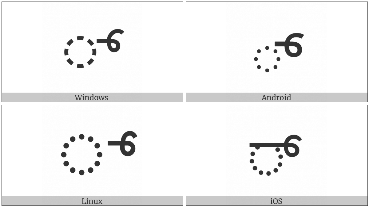 The image below shows how the “Kannada Sign Virama” symbol might look like on different operating systems. If the font in which this web site is displayed does not contain the symbol and there is no fallback font able to render it, you can use the image below to get an idea of what it should look like.