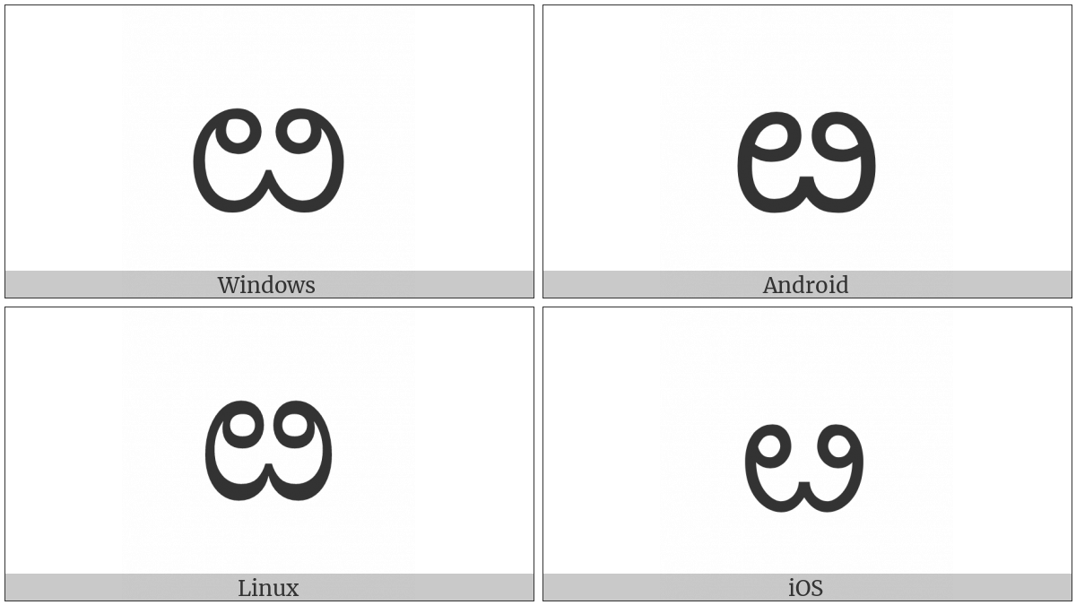The image below shows how the “Kannada Letter Fa” symbol might look like on different operating systems. If the font in which this web site is displayed does not contain the symbol and there is no fallback font able to render it, you can use the image below to get an idea of what it should look like.