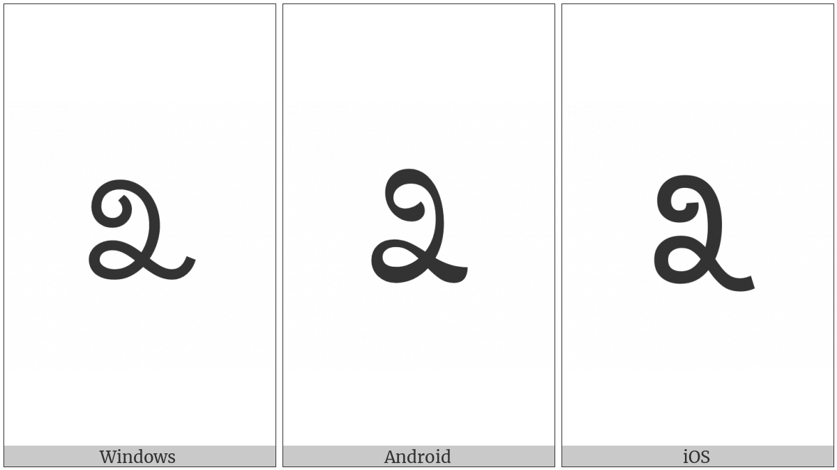 The image below shows how the “Kannada Digit Three” symbol might look like on different operating systems. If the font in which this web site is displayed does not contain the symbol and there is no fallback font able to render it, you can use the image below to get an idea of what it should look like.