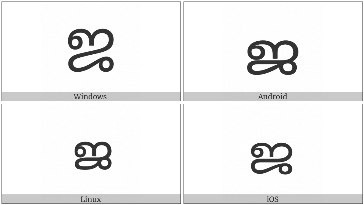 “Malayalam Letter Ja” on various operating systems