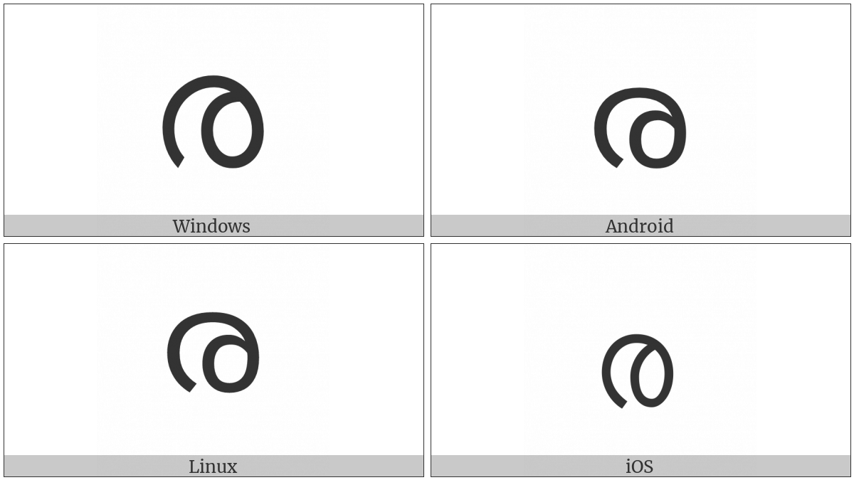 The image below shows how the “Malayalam Letter Ra” symbol might look like on different operating systems. If the font in which this web site is displayed does not contain the symbol and there is no fallback font able to render it, you can use the image below to get an idea of what it should look like.