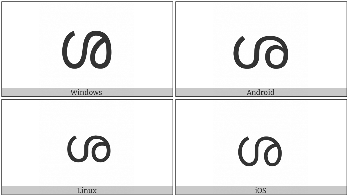 The image below shows how the “Malayalam Letter Sha” symbol might look like on different operating systems. If the font in which this web site is displayed does not contain the symbol and there is no fallback font able to render it, you can use the image below to get an idea of what it should look like.