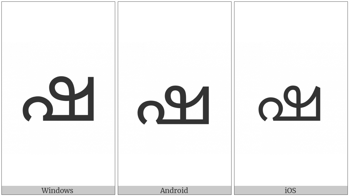 The image below shows how the “Malayalam Letter Ssa” symbol might look like on different operating systems. If the font in which this web site is displayed does not contain the symbol and there is no fallback font able to render it, you can use the image below to get an idea of what it should look like.