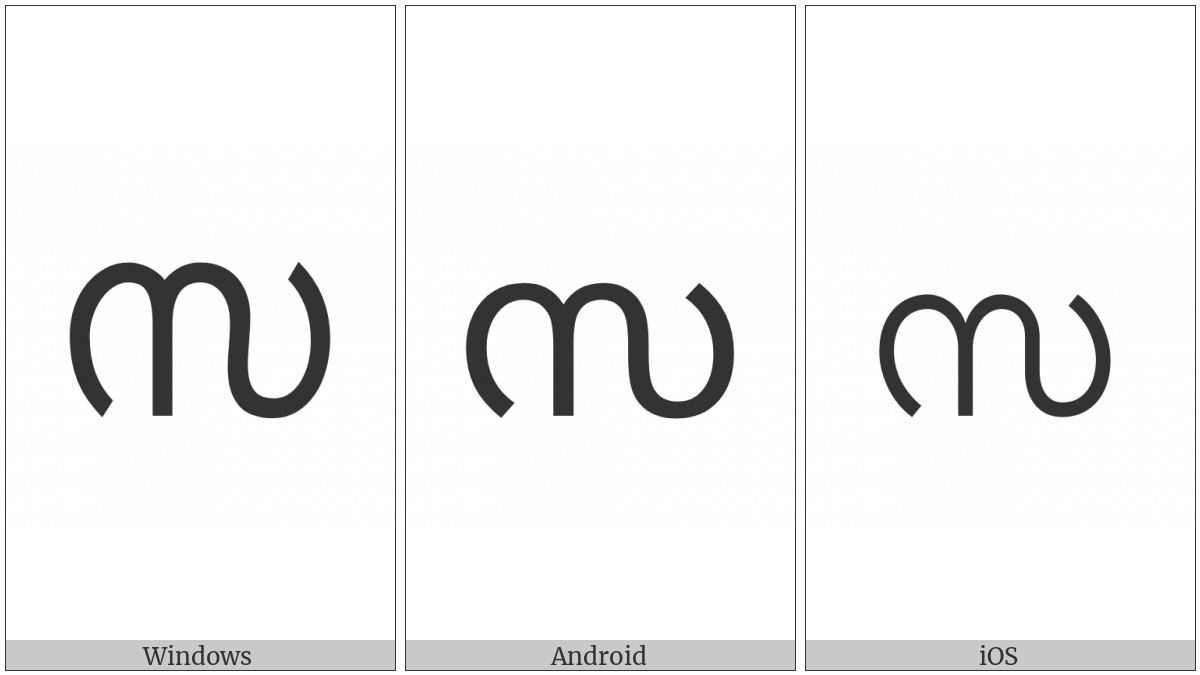 The image below shows how the “Malayalam Letter Sa” symbol might look like on different operating systems. If the font in which this web site is displayed does not contain the symbol and there is no fallback font able to render it, you can use the image below to get an idea of what it should look like.
