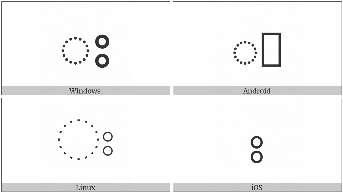 The image below shows how the “Sinhala Sign Visargaya” symbol might look like on different operating systems. If the font in which this web site is displayed does not contain the symbol and there is no fallback font able to render it, you can use the image below to get an idea of what it should look like.