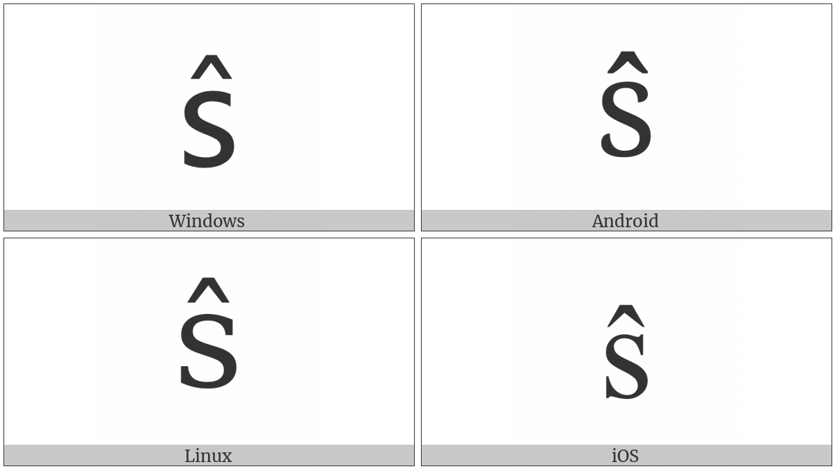 The image below shows how the “Latin Small Letter S With Circumflex” symbol might look like on different operating systems. If the font in which this web site is displayed does not contain the symbol and there is no fallback font able to render it, you can use the image below to get an idea of what it should look like.