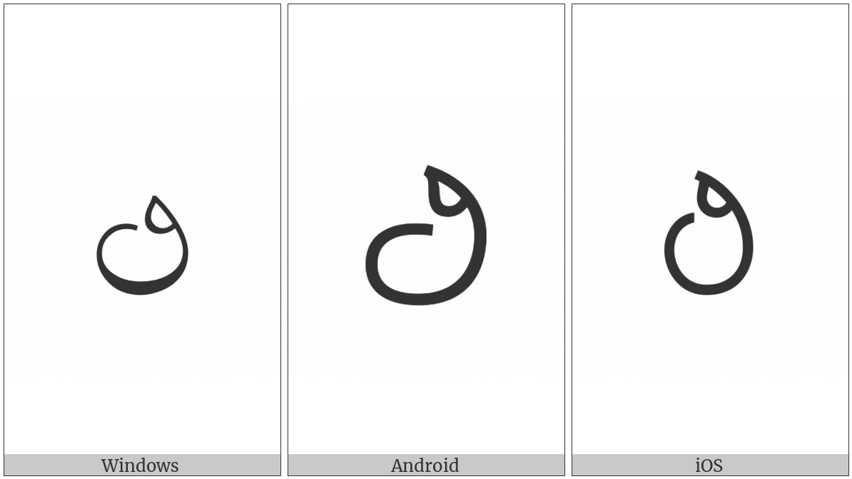 The image below shows how the “Sinhala Letter Mahaapraana Tayanna” symbol might look like on different operating systems. If the font in which this web site is displayed does not contain the symbol and there is no fallback font able to render it, you can use the image below to get an idea of what it should look like.