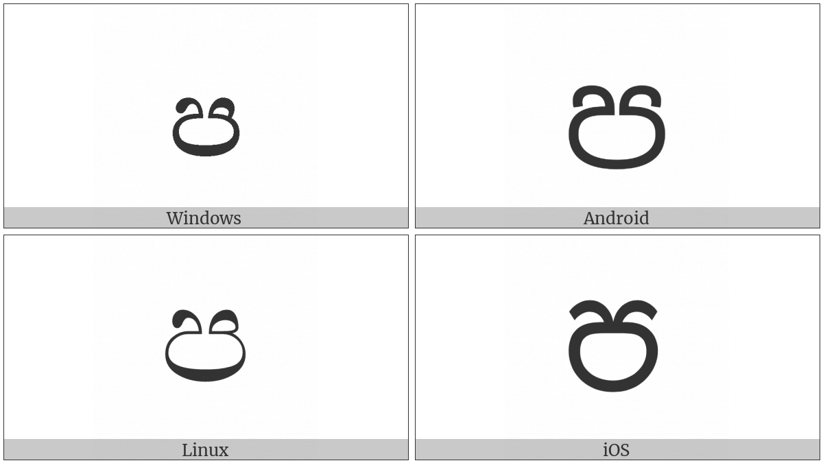 The image below shows how the “Sinhala Letter Alpapraana Payanna” symbol might look like on different operating systems. If the font in which this web site is displayed does not contain the symbol and there is no fallback font able to render it, you can use the image below to get an idea of what it should look like.
