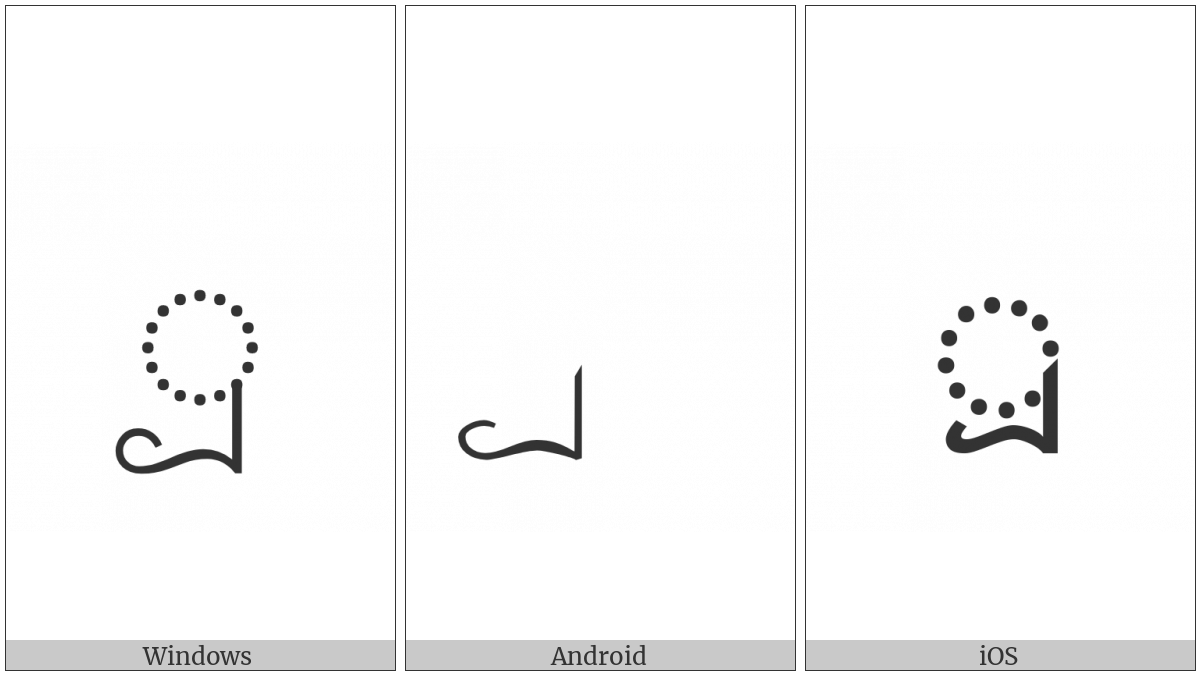 The image below shows how the “Sinhala Vowel Sign Diga Paa-Pilla” symbol might look like on different operating systems. If the font in which this web site is displayed does not contain the symbol and there is no fallback font able to render it, you can use the image below to get an idea of what it should look like.