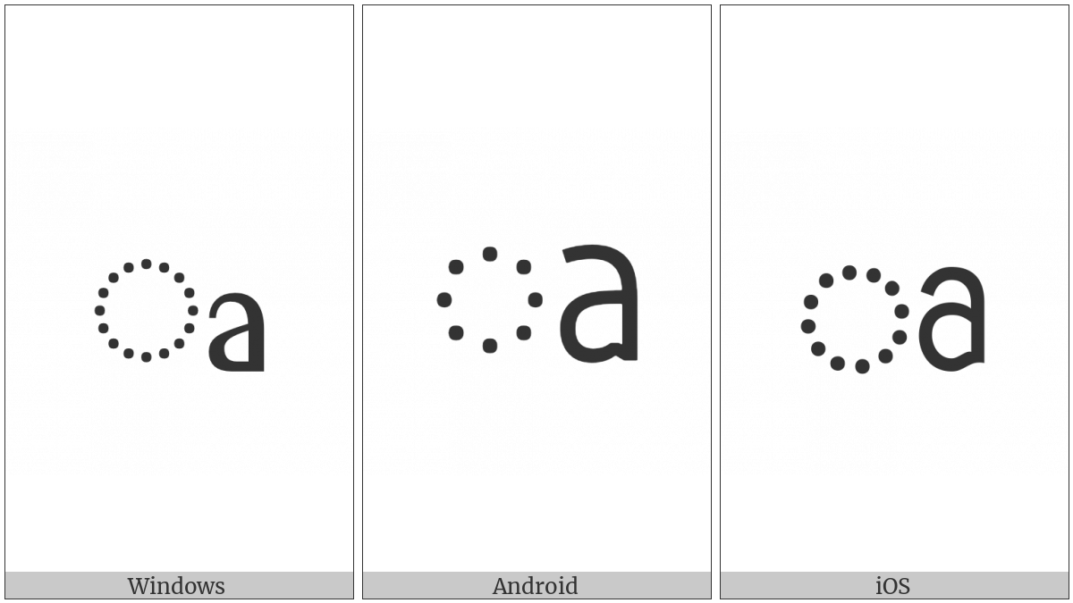 The image below shows how the “Sinhala Vowel Sign Gaetta-Pilla” symbol might look like on different operating systems. If the font in which this web site is displayed does not contain the symbol and there is no fallback font able to render it, you can use the image below to get an idea of what it should look like.
