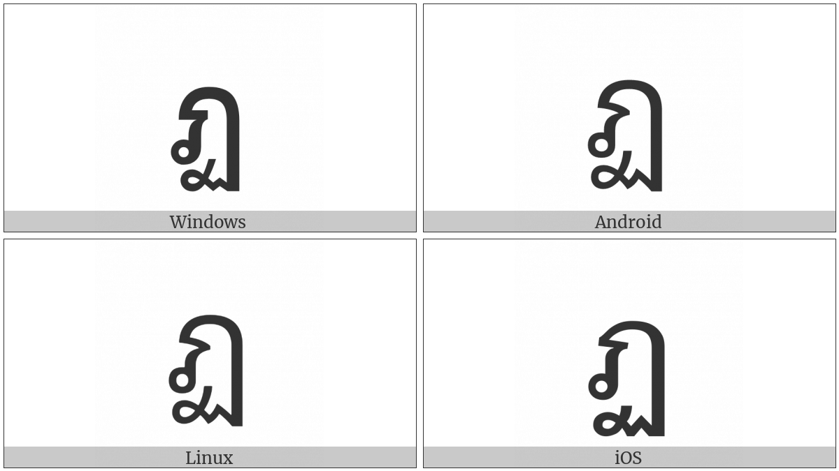 The image below shows how the “Thai Character To Patak” symbol might look like on different operating systems. If the font in which this web site is displayed does not contain the symbol and there is no fallback font able to render it, you can use the image below to get an idea of what it should look like.