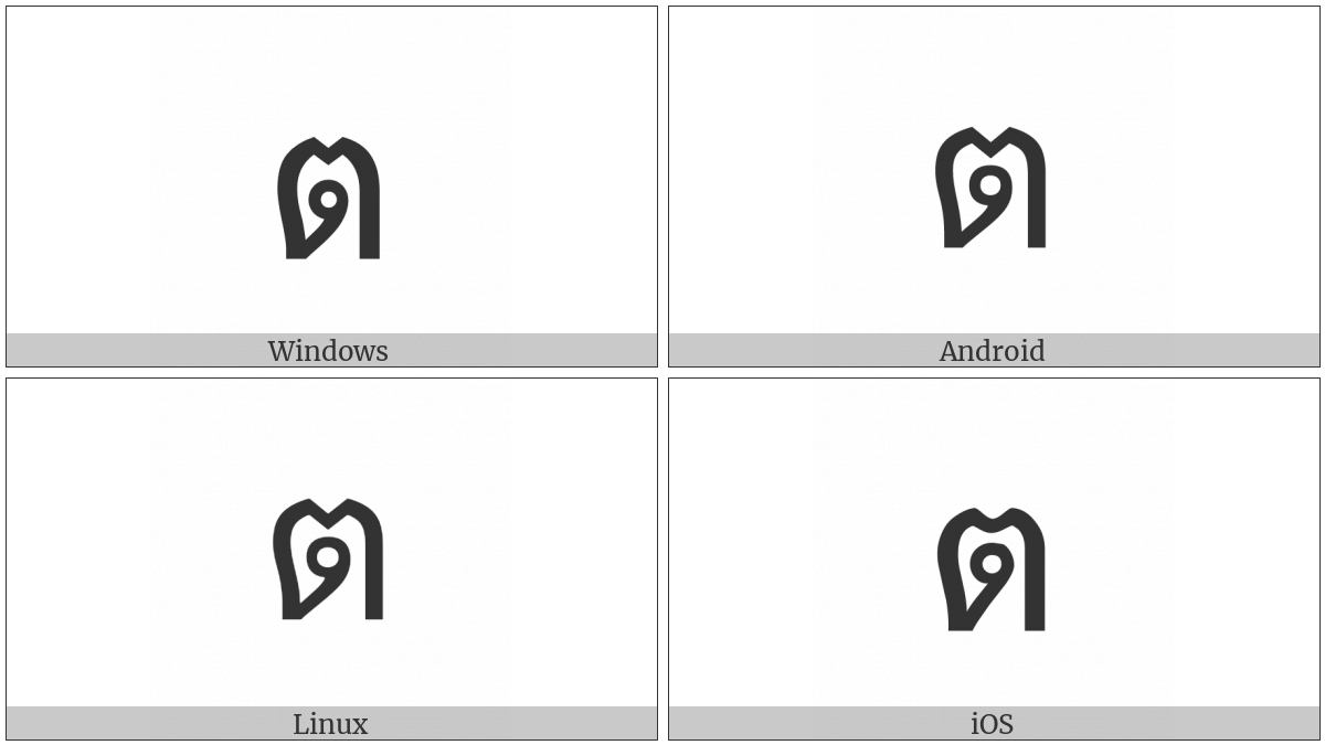 The image below shows how the “Thai Character To Tao” symbol might look like on different operating systems. If the font in which this web site is displayed does not contain the symbol and there is no fallback font able to render it, you can use the image below to get an idea of what it should look like.