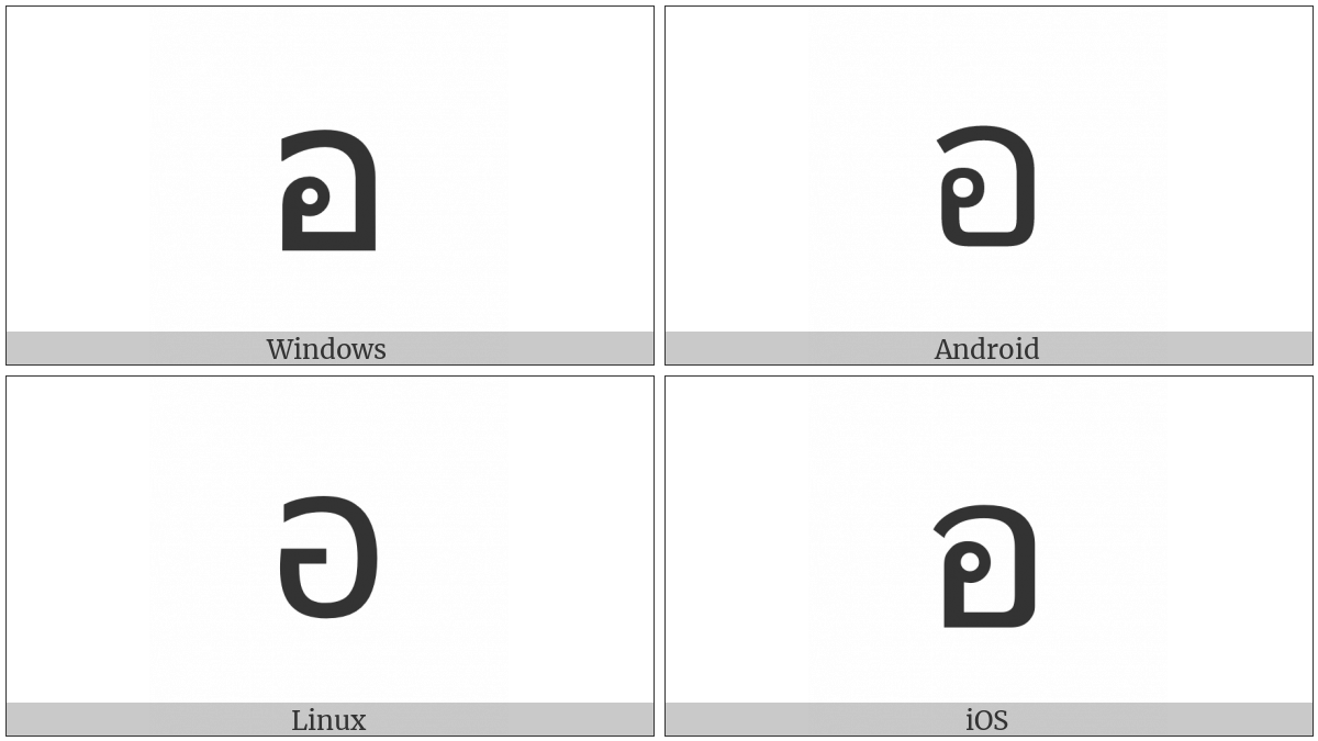 The image below shows how the “Thai Character O Ang” symbol might look like on different operating systems. If the font in which this web site is displayed does not contain the symbol and there is no fallback font able to render it, you can use the image below to get an idea of what it should look like.