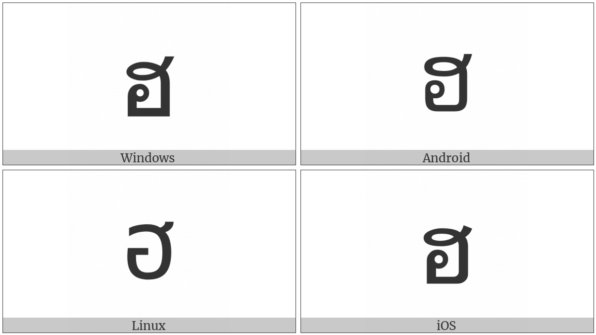 The image below shows how the “Thai Character Ho Nokhuk” symbol might look like on different operating systems. If the font in which this web site is displayed does not contain the symbol and there is no fallback font able to render it, you can use the image below to get an idea of what it should look like.