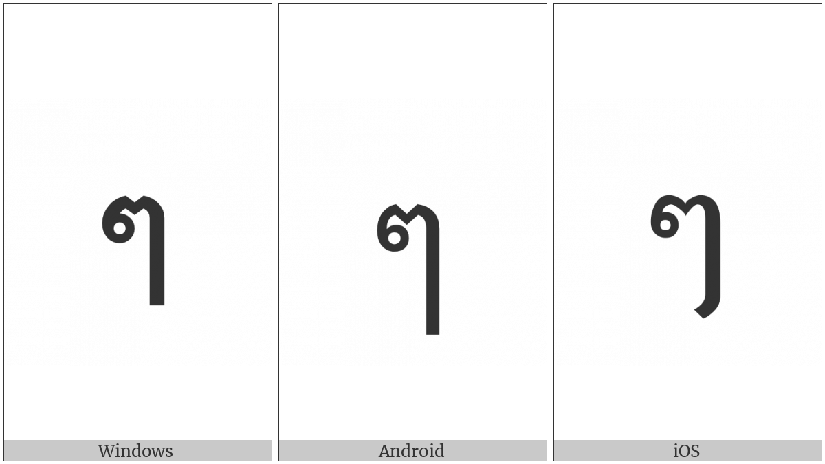 The image below shows how the “Thai Character Maiyamok” symbol might look like on different operating systems. If the font in which this web site is displayed does not contain the symbol and there is no fallback font able to render it, you can use the image below to get an idea of what it should look like.
