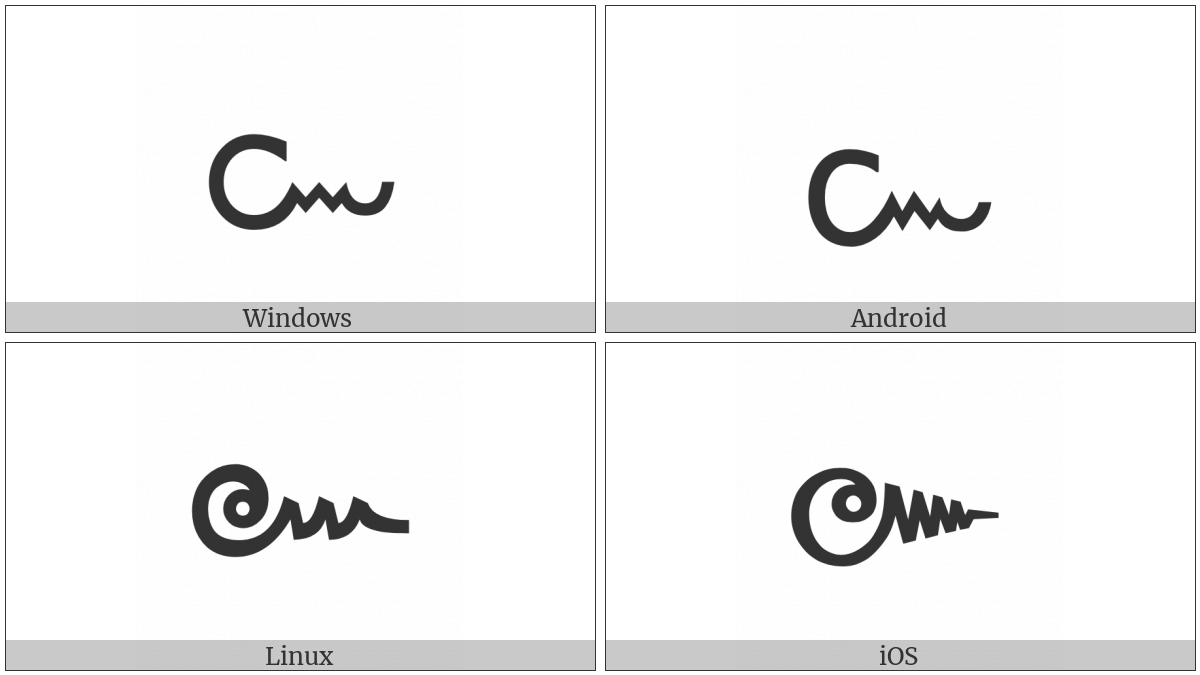 The image below shows how the “Thai Character Khomut” symbol might look like on different operating systems. If the font in which this web site is displayed does not contain the symbol and there is no fallback font able to render it, you can use the image below to get an idea of what it should look like.