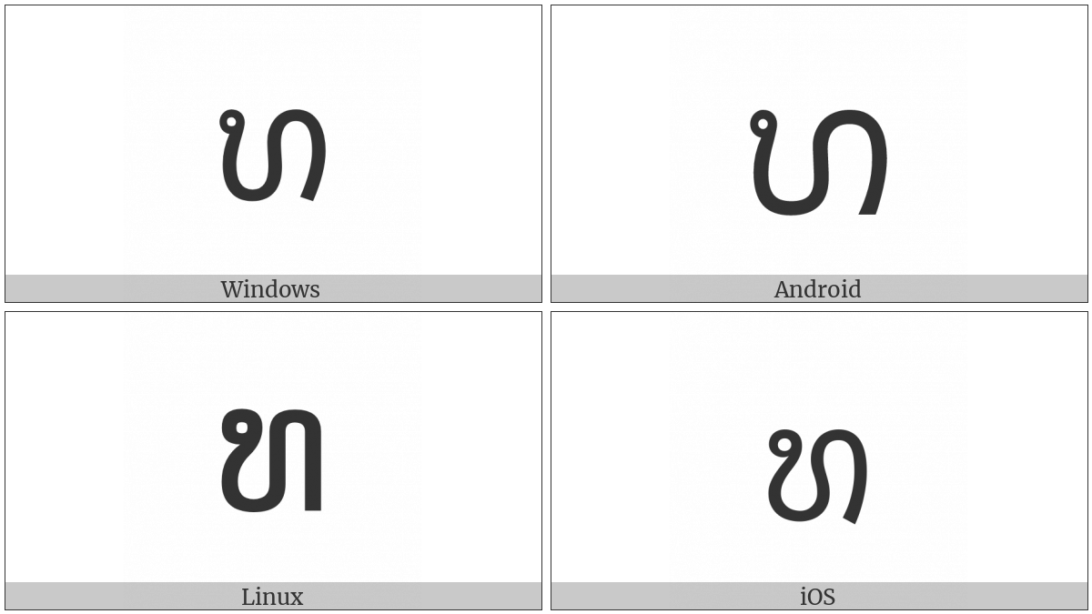 The image below shows how the “Lao Letter Tho Tam” symbol might look like on different operating systems. If the font in which this web site is displayed does not contain the symbol and there is no fallback font able to render it, you can use the image below to get an idea of what it should look like.