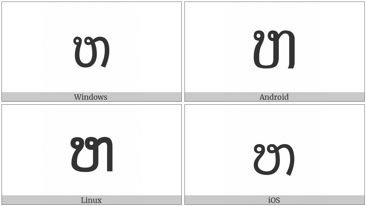 The image below shows how the “Lao Letter Ho Sung” symbol might look like on different operating systems. If the font in which this web site is displayed does not contain the symbol and there is no fallback font able to render it, you can use the image below to get an idea of what it should look like.