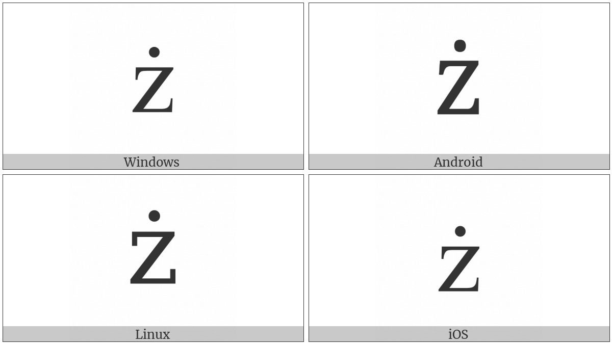 “Latin Small Letter Z With Dot Above” on various operating systems