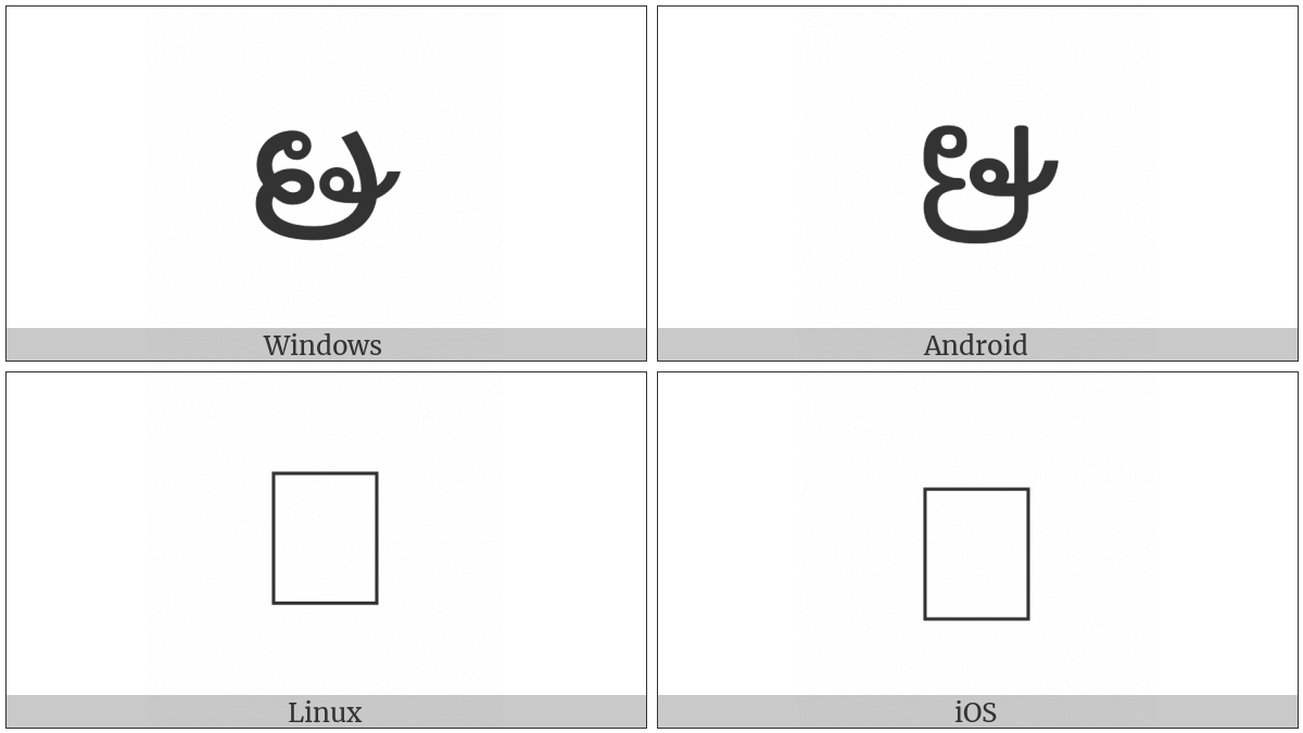 The image below shows how the “Lao Letter Khmu Nyo” symbol might look like on different operating systems. If the font in which this web site is displayed does not contain the symbol and there is no fallback font able to render it, you can use the image below to get an idea of what it should look like.