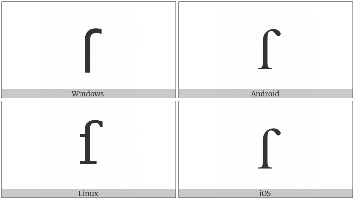 The image below shows how the “Latin Small Letter Long S” symbol might look like on different operating systems. If the font in which this web site is displayed does not contain the symbol and there is no fallback font able to render it, you can use the image below to get an idea of what it should look like.