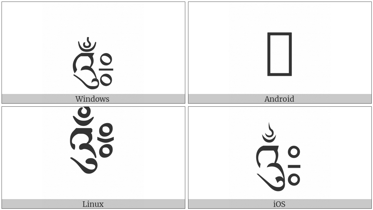 The image below shows how the “Tibetan Mark Gter Yig Mgo -Um Gter Tsheg Ma” symbol might look like on different operating systems. If the font in which this web site is displayed does not contain the symbol and there is no fallback font able to render it, you can use the image below to get an idea of what it should look like.