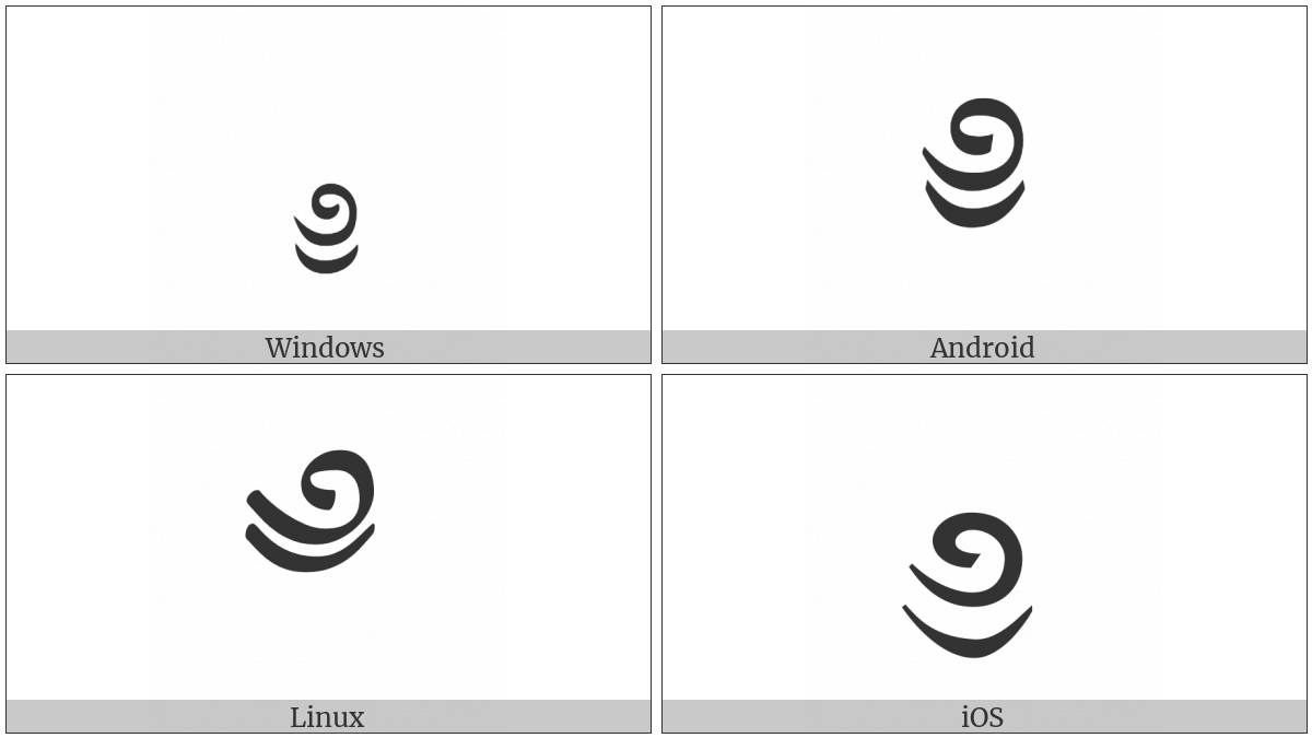 The image below shows how the “Tibetan Mark Closing Yig Mgo Sgab Ma” symbol might look like on different operating systems. If the font in which this web site is displayed does not contain the symbol and there is no fallback font able to render it, you can use the image below to get an idea of what it should look like.