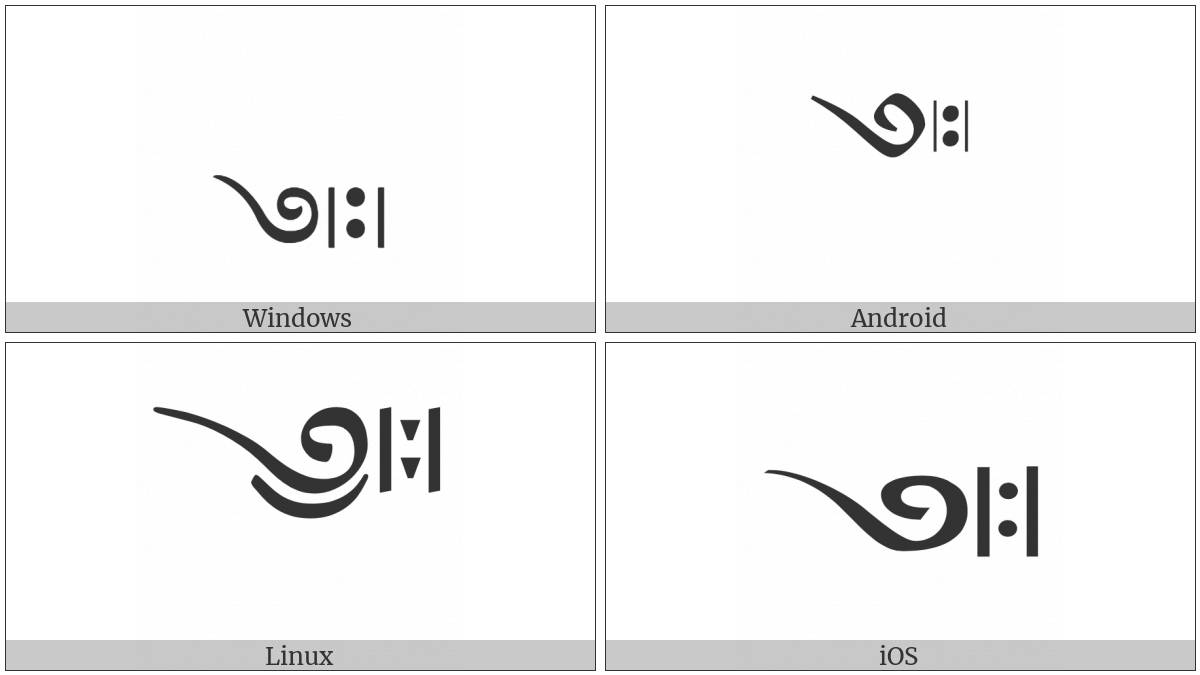 The image below shows how the “Tibetan Mark Yig Mgo Tsheg Shad Ma” symbol might look like on different operating systems. If the font in which this web site is displayed does not contain the symbol and there is no fallback font able to render it, you can use the image below to get an idea of what it should look like.