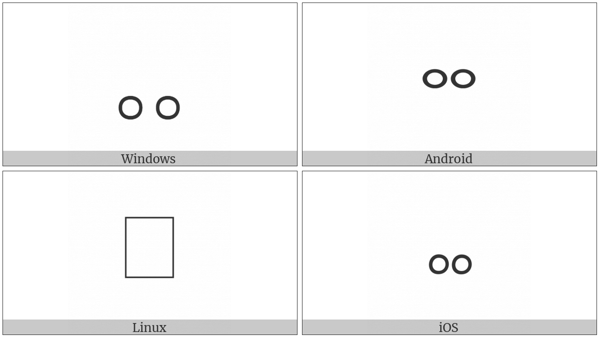 The image below shows how the “Tibetan Sign Rdel Dkar Gnyis” symbol might look like on different operating systems. If the font in which this web site is displayed does not contain the symbol and there is no fallback font able to render it, you can use the image below to get an idea of what it should look like.