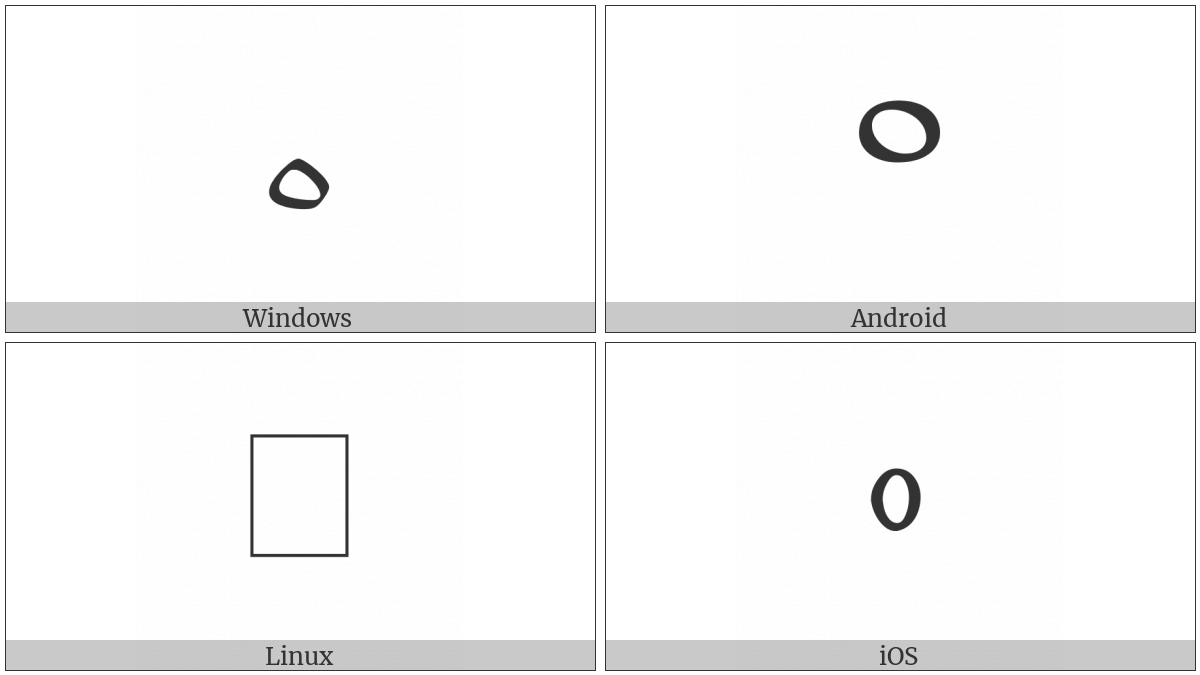 The image below shows how the “Tibetan Digit Zero” symbol might look like on different operating systems. If the font in which this web site is displayed does not contain the symbol and there is no fallback font able to render it, you can use the image below to get an idea of what it should look like.