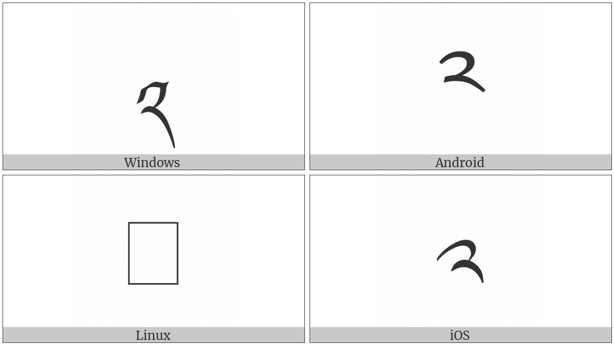 The image below shows how the “Tibetan Digit Two” symbol might look like on different operating systems. If the font in which this web site is displayed does not contain the symbol and there is no fallback font able to render it, you can use the image below to get an idea of what it should look like.