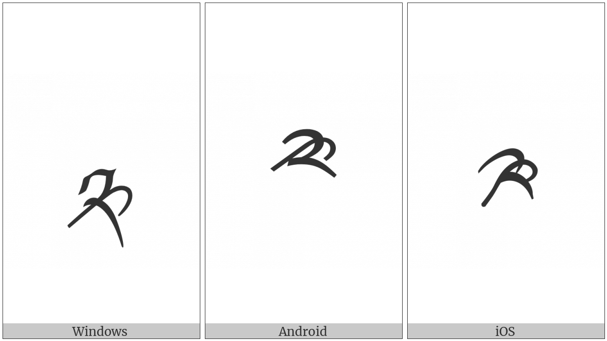 The image below shows how the “Tibetan Digit Half Two” symbol might look like on different operating systems. If the font in which this web site is displayed does not contain the symbol and there is no fallback font able to render it, you can use the image below to get an idea of what it should look like.