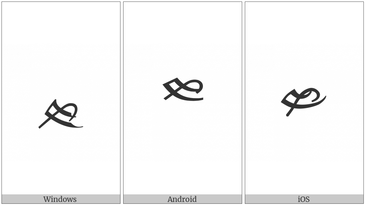 The image below shows how the “Tibetan Digit Half Four” symbol might look like on different operating systems. If the font in which this web site is displayed does not contain the symbol and there is no fallback font able to render it, you can use the image below to get an idea of what it should look like.