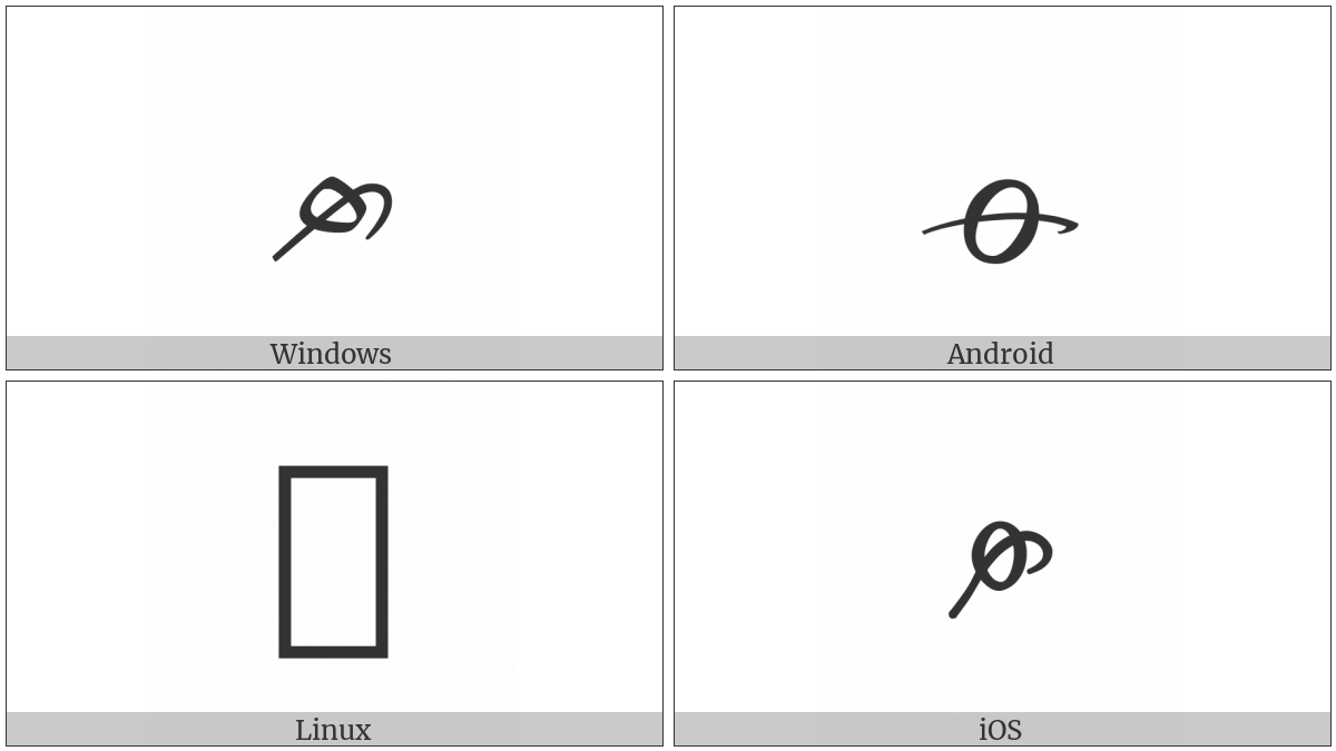 The image below shows how the “Tibetan Digit Half Zero” symbol might look like on different operating systems. If the font in which this web site is displayed does not contain the symbol and there is no fallback font able to render it, you can use the image below to get an idea of what it should look like.