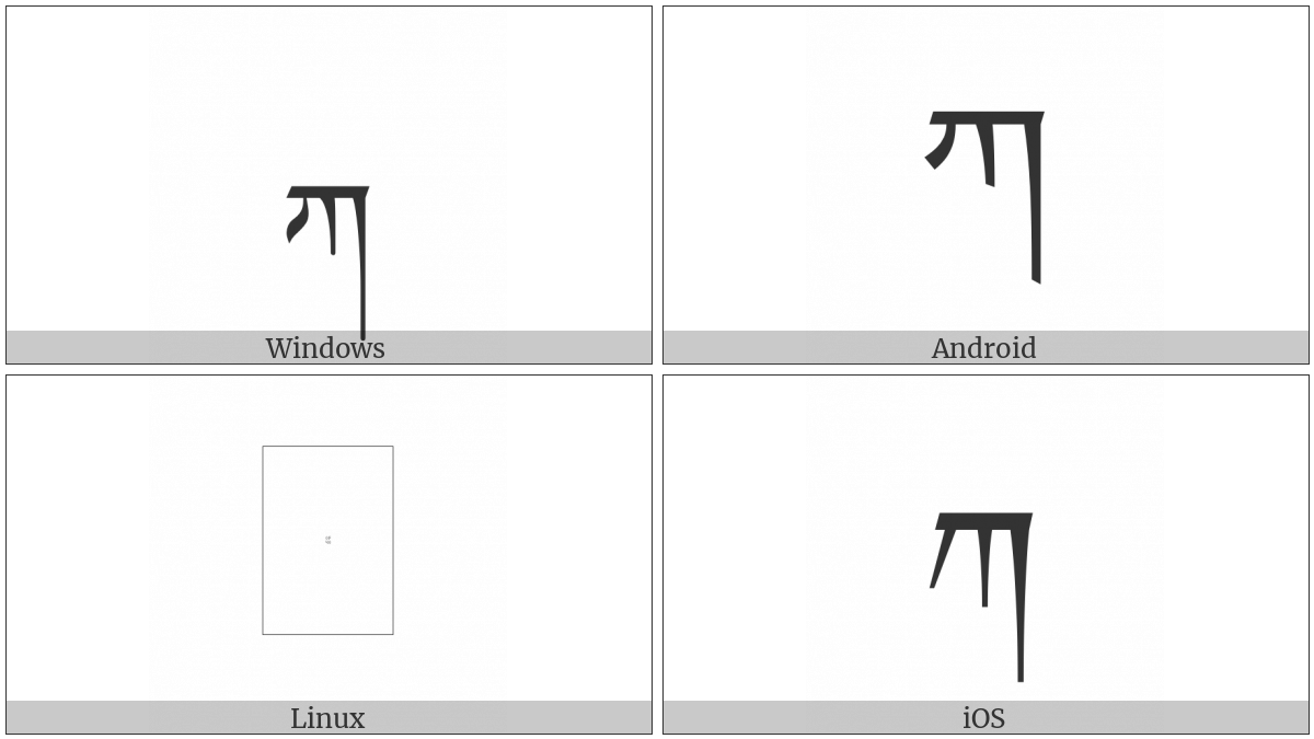 The image below shows how the “Tibetan Letter Ka” symbol might look like on different operating systems. If the font in which this web site is displayed does not contain the symbol and there is no fallback font able to render it, you can use the image below to get an idea of what it should look like.
