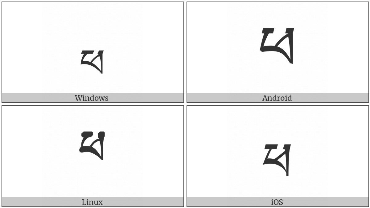 The image below shows how the “Tibetan Letter Pha” symbol might look like on different operating systems. If the font in which this web site is displayed does not contain the symbol and there is no fallback font able to render it, you can use the image below to get an idea of what it should look like.