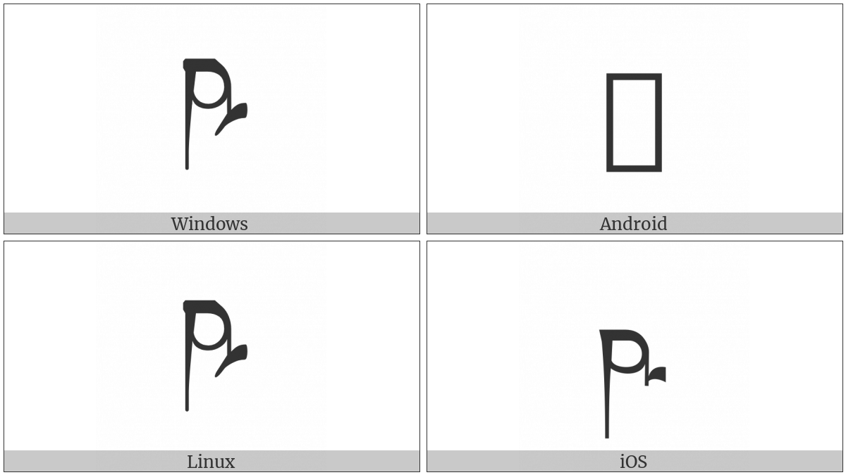 The image below shows how the “Tibetan Letter Ssa” symbol might look like on different operating systems. If the font in which this web site is displayed does not contain the symbol and there is no fallback font able to render it, you can use the image below to get an idea of what it should look like.