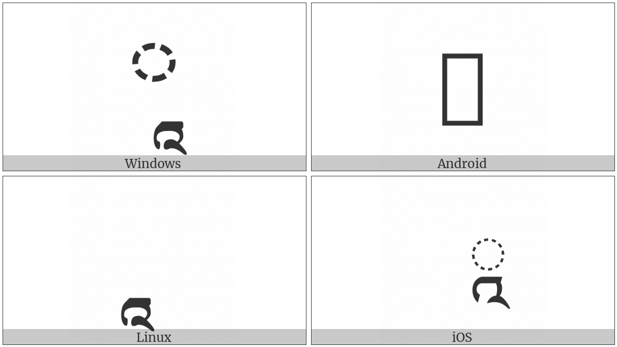 The image below shows how the “Tibetan Vowel Sign Aa” symbol might look like on different operating systems. If the font in which this web site is displayed does not contain the symbol and there is no fallback font able to render it, you can use the image below to get an idea of what it should look like.