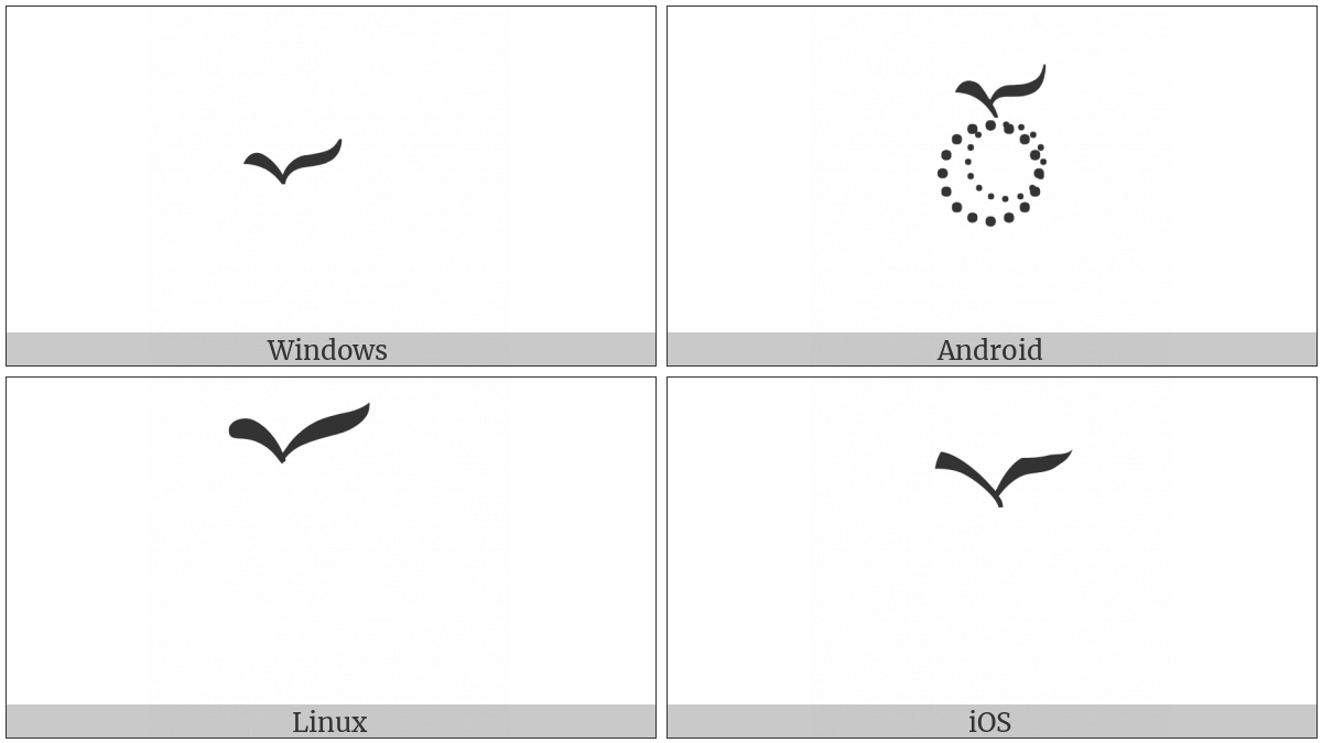 The image below shows how the “Tibetan Vowel Sign O” symbol might look like on different operating systems. If the font in which this web site is displayed does not contain the symbol and there is no fallback font able to render it, you can use the image below to get an idea of what it should look like.
